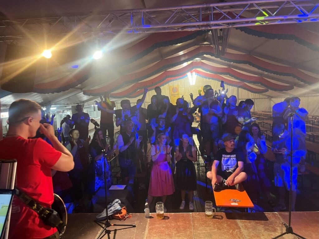 Der Samstag war der große Tag. Schon ab 13 Uhr war das Gelände voller Leben — Kinder tobten beim Spielprogramm, die Kickers-Legenden schnürten noch einmal die Schuhe, und am Abend wurde beim Bayerischen Abend gefeiert, als gäbe es kein Morgen.